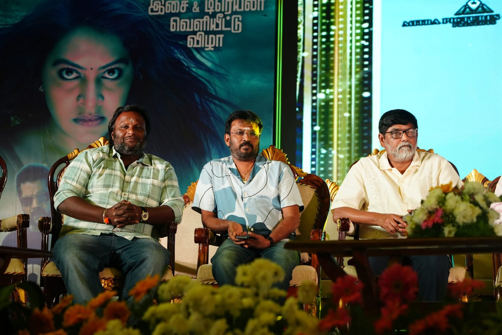 ஒரே மேடையில் மூன்று விழா நடத்துவது இங்கு தான் பார்க்கிறேன். தயாரிப்பாளர் தாணுவையே மிஞ்சிவிட்டார் மூர்த்தி வாழ்த்துக்கள். ஆர் வி உதயகுமார் இயக்குநர் சங்க தலைவரா? இல்லை ரக்ஷிதா ரசிகர் மன்ற தலைவரா எனத் தெரியவில்லை. அந்தளவு தீவிர ரசிகராக இருக்கிறார். ரக்ஷிதா எந்த கதாப்பாத்திரம் தந்தாலும் அப்படியே மாறிவிடுகிறார். அவருக்கு வாழ்த்துக்கள். பேய்ப்படம் என நினைத்தால் பாடல் எல்லாம் பக்திப்படம் போல உள்ளது. பிள்ளையார் பாடல், கருப்பண்ண சாமி பாடல், புத்தர் பாடல் எல்லாம் பயங்கர என்ர்ஜியாக உள்ளது. அமைதிக்கான கடவுள் புத்தர் அவர் பற்றி தமிழ் சினிமாவில் வரவில்லை. இப்படத்தில் வந்துள்ளது மகிழ்ச்சி. மூர்த்தி அவர்களின் தன்னம்பிக்கைக்கும் உழைப்பிற்கும் இப்படம் பெரிய வெற்றி பெறட்டும். நன்றி.