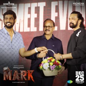 சத்ய ஜோதி ஃபிலிம்ஸ் மற்றும் கிச்சா கிரியேஷன் தயாரிப்பில், விஜய் கார்த்திகேயன் இயக்கத்தில் நடிகர்கள் கிச்சா சுதீப், நவீன் சந்திரா, விக்ராந்த், யோகி பாபு, தீப்ஷிகா மற்றும் பலர் நடிப்பில் உருவாகியுள்ள திரைப்படம் ‘மார்க்’. இந்த மாதம் கிறிஸ்துமஸ் வெளியீடாக வரவிருக்கும் இந்தத் திரைப்படத்தின் பத்திரிக்கையாளர்கள் சந்திப்பு நடைபெற்றது.