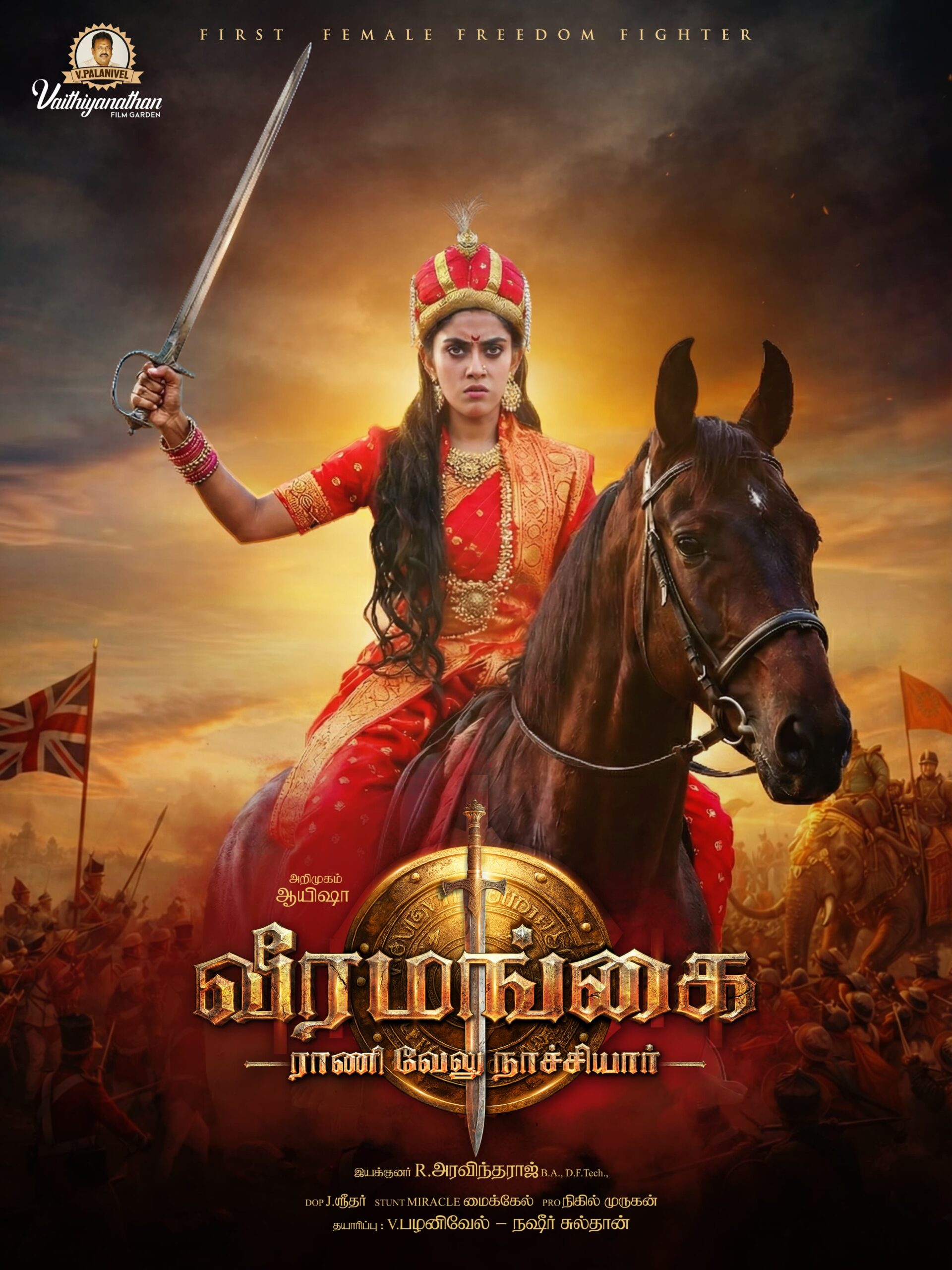 The biopic portrays the inspiring life of Velu Nachiyar, the fearless queen of Sivagangai and one of India’s earliest women freedom fighters. After her husband Muthuvaduganatha Thevar is killed by the British East India Company, Velu Nachiyar rises from exile to lead a determined resistance. Trained in warfare and strategy, she forges alliances with Hyder Ali and Tipu Sultan, builds a powerful women’s army, and plans a historic counterattack. The film highlights her courage, leadership, and the iconic act of Kuyili, the first female suicide bomber, leading to the recapture of Sivagangai. The story celebrates Velu Nachiyar as a symbol of valor, sacrifice, and women’s empowerment in India’s freedom struggle.
