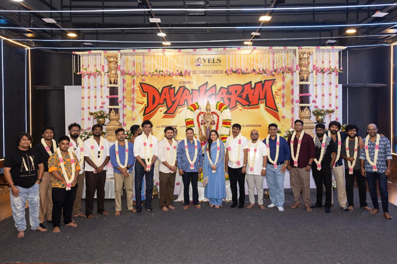 Chennai, India: The grand launch ceremony of “Dayangaram”, produced by Vels Film International under the banner of Dr. Ishari K. Ganesh, was held with grandeur at L.A. Studio, Nungambakkam, Chennai.